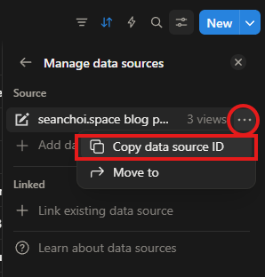 You can grab your data_source_id from the Notion data source as described here, but I got mine like so: